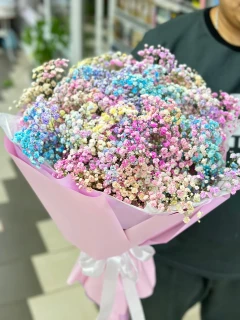 В букете "Пушистик" собраны самые нежные и восхитительные яркие разноцветные гипсофилы. Их легкие волоски, словно тонкий тюль, придают композиции особую воздушность и легкость. Этот букет станет идеальным презентом для любимой и поможет выразить всю нежность и тепло вашего чувства. Нежная упаковка добавляет романтичности и завершает образ волшебного цветочного замкнутого сада, который обещает принести радость и счастье тому, кто его получит. Можете быть уверены, что этот букет станет незабываемым и оставит теплые воспоминания на долгие годы.