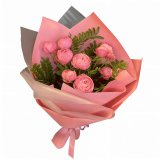 Пионовидные кустовые розы символизируют любовь и восхищение. Подарите мгновение счастья и радости с нашим букетом, который наполнит пространство теплом и ароматом весны!